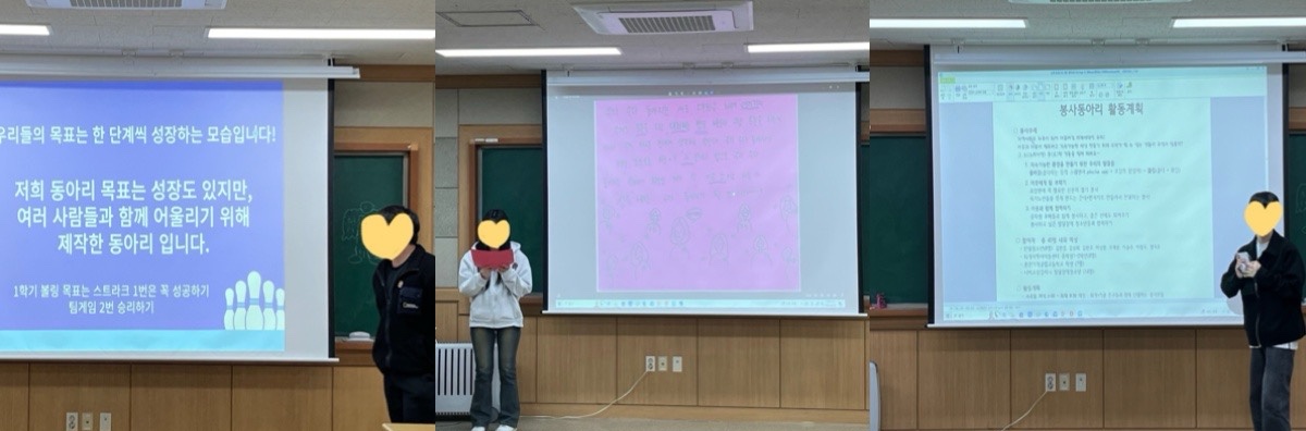 각 동아리 회장들이 동아리 활동계획을 발표했어요.