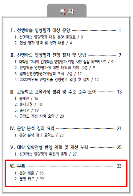 2022학년도 선행학습 영향평가 결과보고서(면접 기출문제 포함)