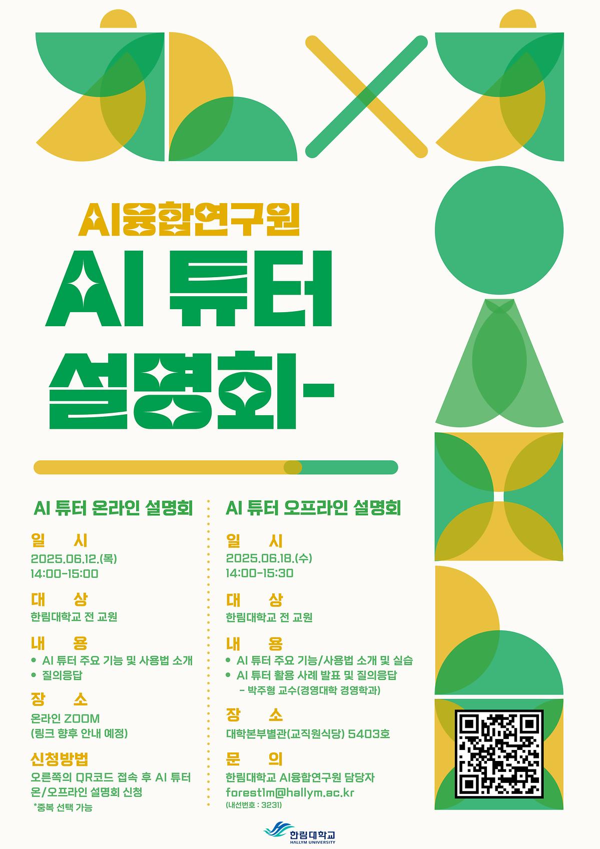 2025학년도 2학기 AI 결합 교과목 'AI 튜터' 유형 온/오프라인 설명회를 진행합니다.