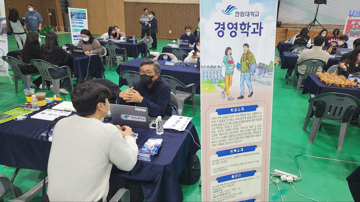 올해는 거리두기가 해제되며 대면 전공박람회가 개최되었습니다. 학과부스 뿐만 아니라, 타로카드 및 인생네컷 등 다양한 체험활동이 있어 학생들의 참여율이 높았습니다. 경영학과 부스에도 많은 학생들이 참여해주었습니다. 경영학과 학생들이 방문하여 그동안 학사 행정에 대해 궁금했거나 헷갈렸던 점을 물어보기도 하고, 진로와 관련하여 고민 점을 교수님과 상담을 하기도 했습니다. 복수전공을 경영학과로 고민하고 있는 학생들도 많이 방문하여 학과의 주 진로나, 트랙제도 등에 대하여 설명을 들었습니다.