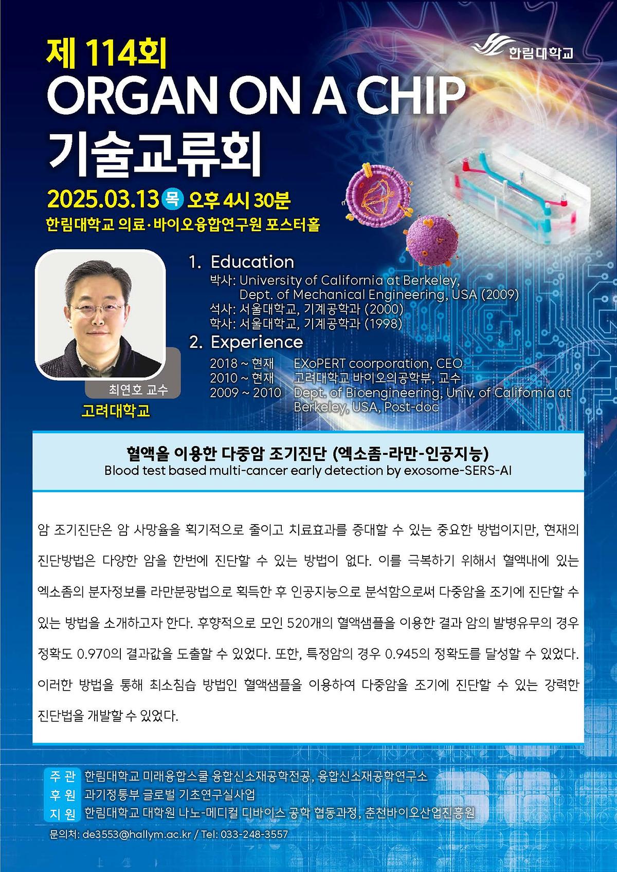 제 114회 Organ on a Chip 기술교류회가 2025년 3월 13일 진행되었다.