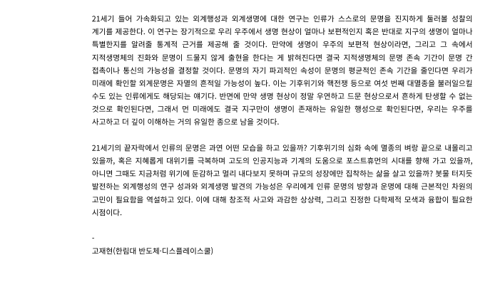 [한림패스파인더 칼럼]외계행성 연구와 인류 문명의 미래(고재현교수님)