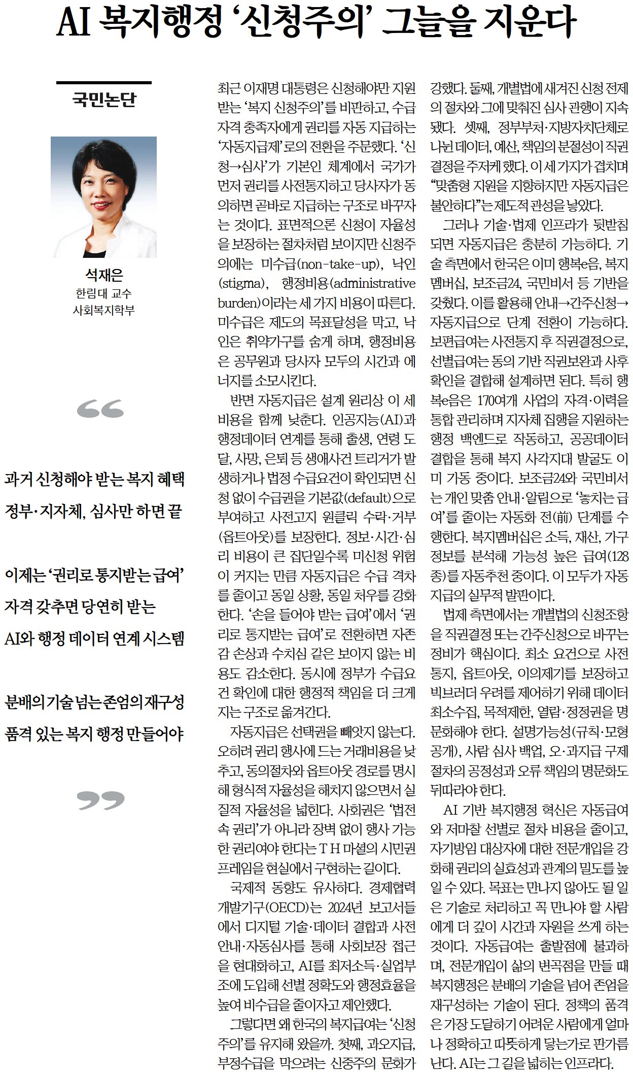 -석재은(사회복지학부) 교수, 칼럼