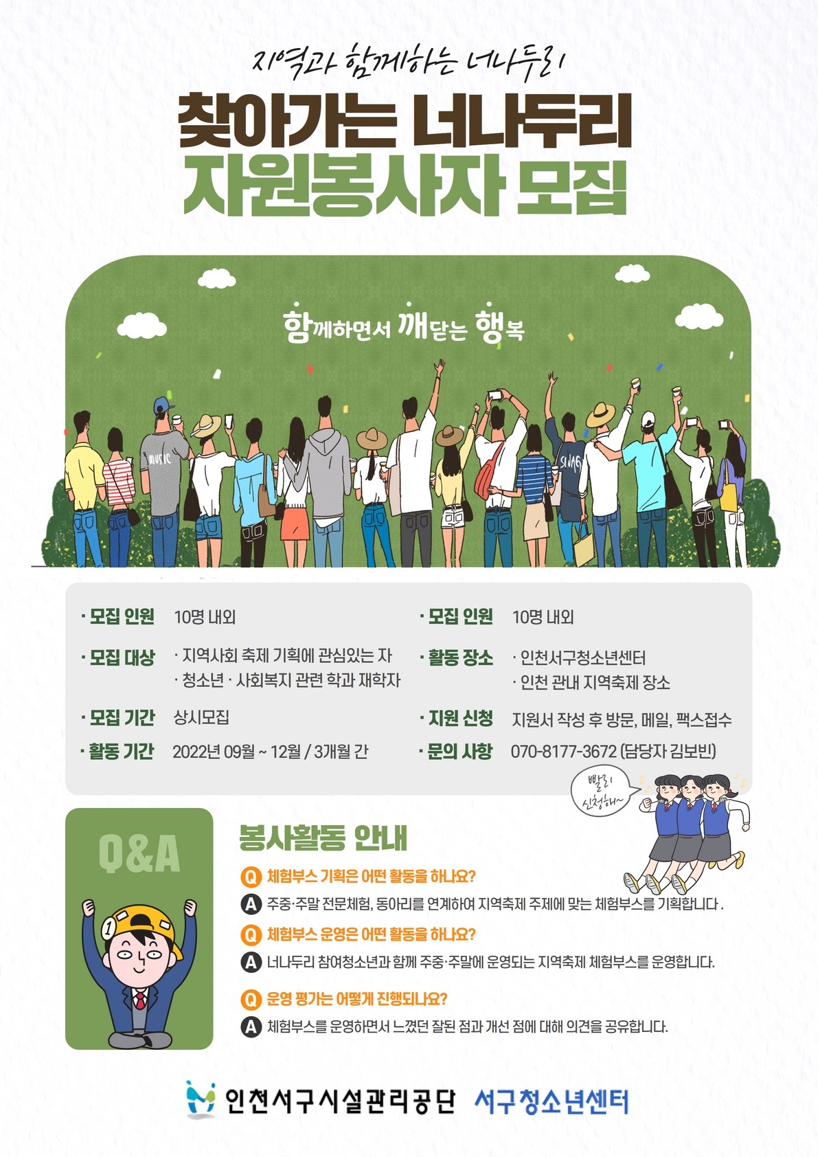 인천서구청소년센터 찾아가는 너나두리 자원봉사자 모집 안내