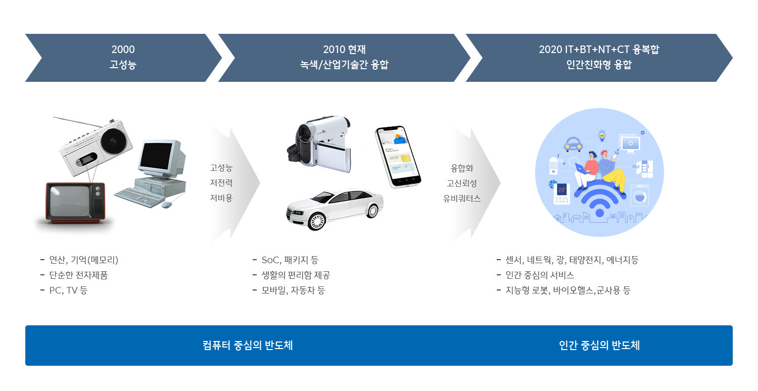 | 시스템반도체 | 그린IT SoC, 자동차용 SoC, 정보통신/가전 SoC, 바이오/메디컬 | |